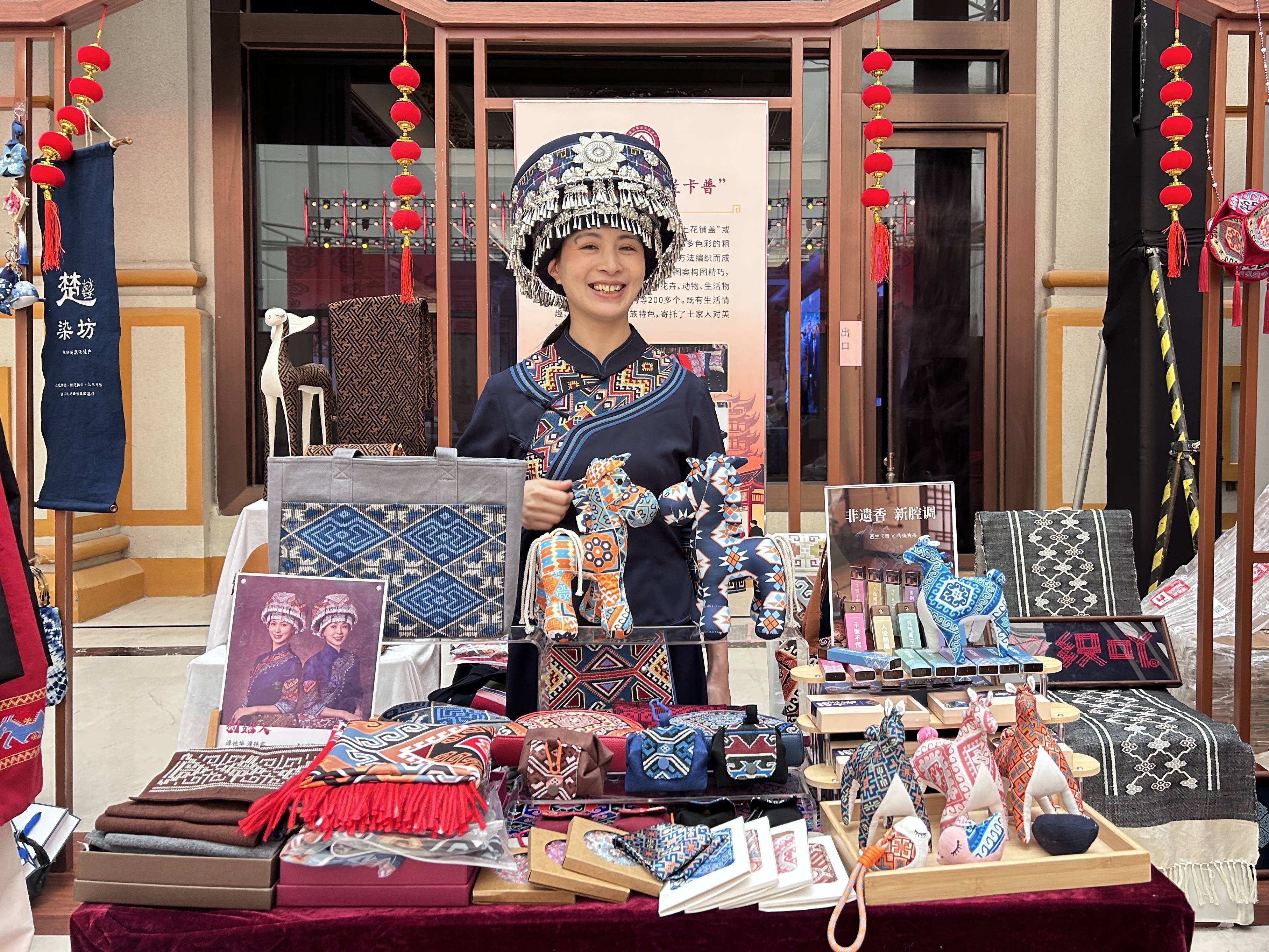 土家织锦西兰卡普系列文创产品。新华社记者 熊翔鹤 摄“这是我们第一次尝试与传统合香做双非遗联名,视觉与嗅觉、织造与合香,两种截然不同的非遗技艺打破壁垒。”允曦艺术发展有限公司创始人谭艳宾说,希望通过联名的方式,带动更多非遗产品面向市场、重焕新生。